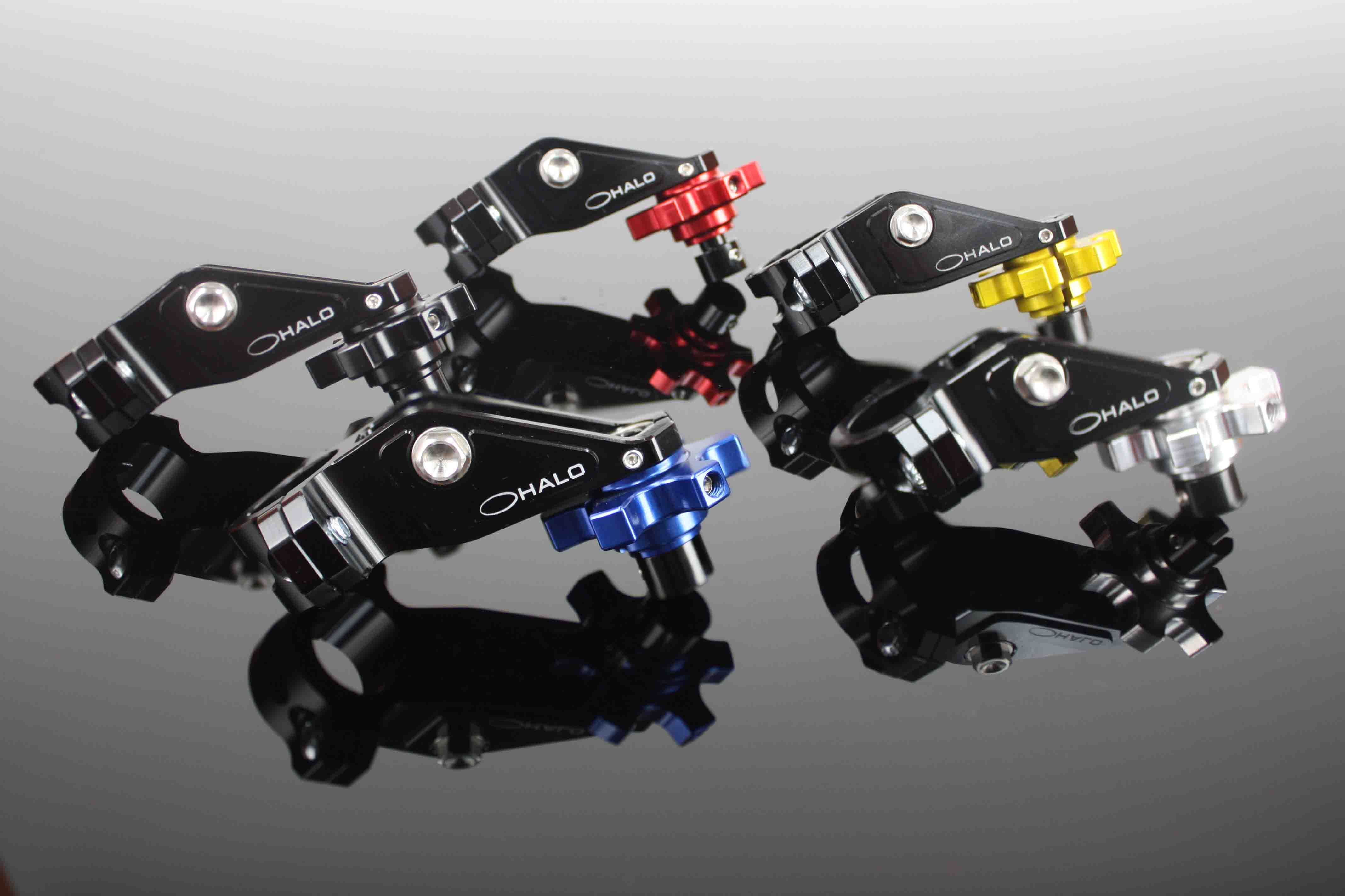 The Halo Clutch Perch is made out of billet aluminum. A one finger adjustable knob with a spring and ball detent, cable control adjustment. You can adjust your clutch cable while riding without removing your hands of the bars using one finger.